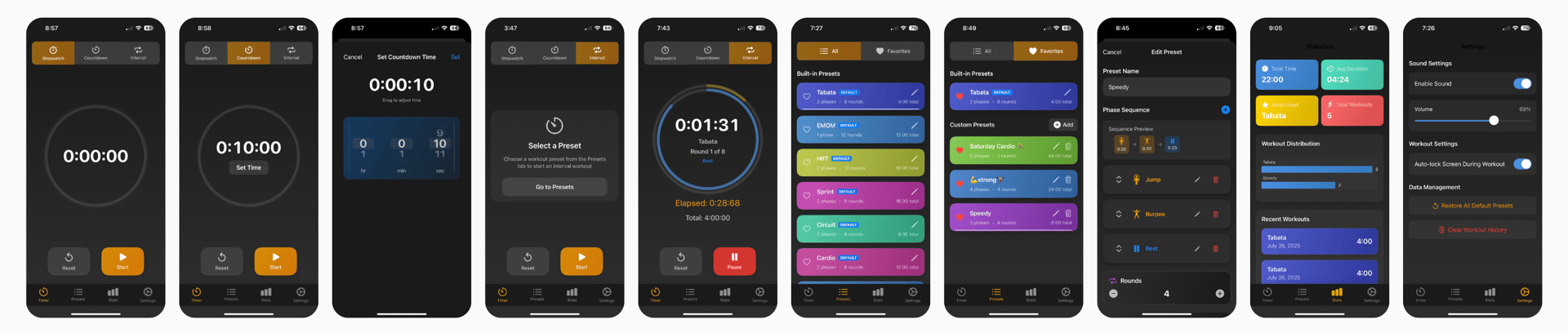 Built-In Workout Presets: Try ready-made presets like Tabata, EMOM, HIIT, Sprint, and more.
